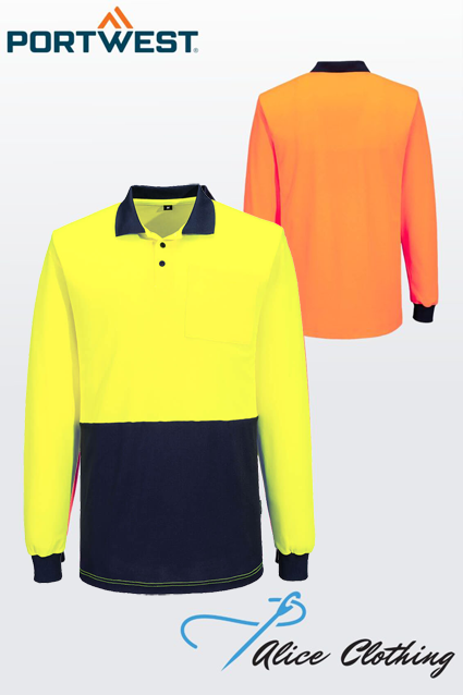 Hi-Vis Breathable Cotton Backed Polyester long sleeve women’s polo with 3 button closure.