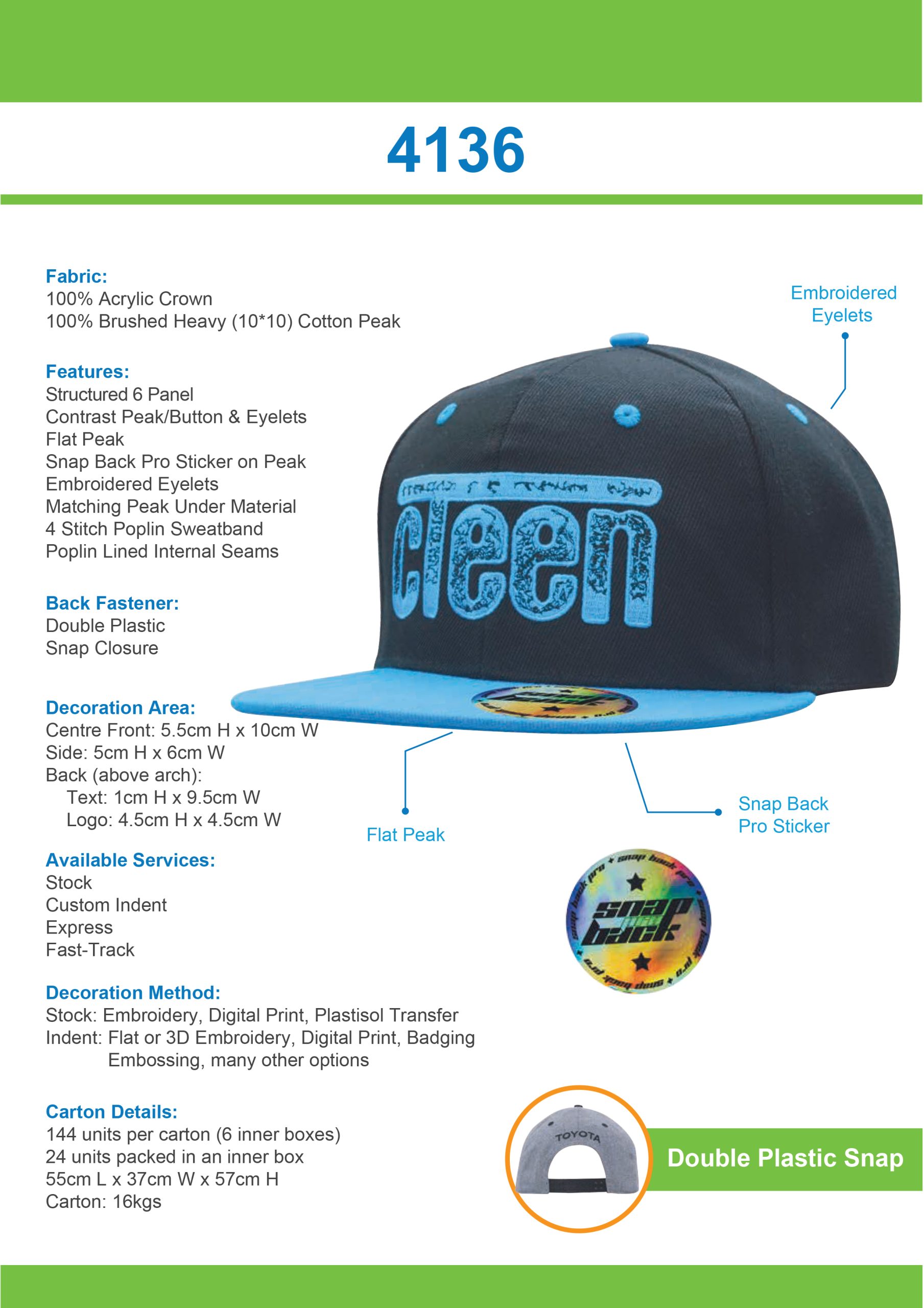 4137 Premium American Twill Youth Size with Snap Back Pro Junior Styling