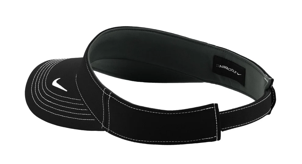 A high-performance, three-panel visor built with Dri-FIT moisture management technology. Contrast stitching adds interest, while the hook and loop closure ensures a custom fit. The contrast Swoosh design trademark is embroidered on the bill. Front panel measures approximately 1.875 h x 10 w. Made of 100% Dri-FIT polyester twill. One Size Fits Most.