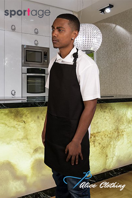 - A full bib apron without pockets made of 100% cotton