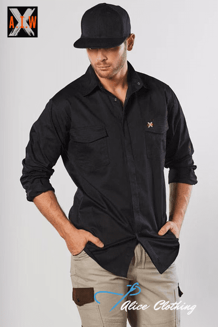 WT10 A.I.W Mens Stretch Work Shirt with 2 Front Flat Pockets