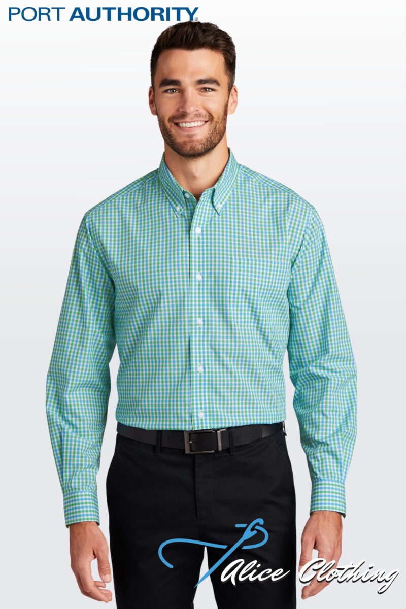 A fresh alternative to a solid-color shirt, our gingham check pattern is office-ready. Crafted in an Easy Care blend, this poplin style resists wrinkles and features bias-cut details.