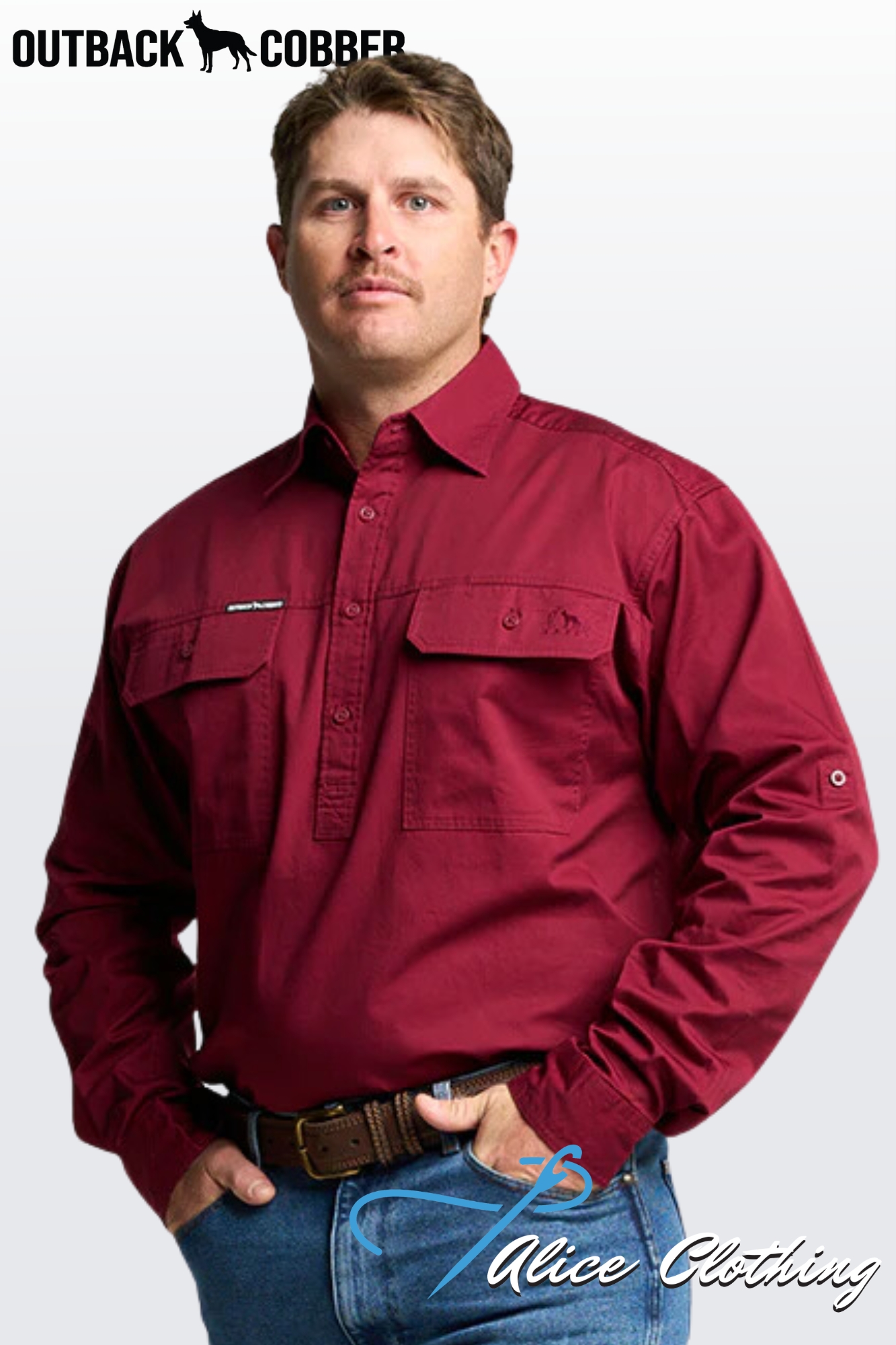 KILCOY | Mens Half Button Long Sleeve Work Shirt